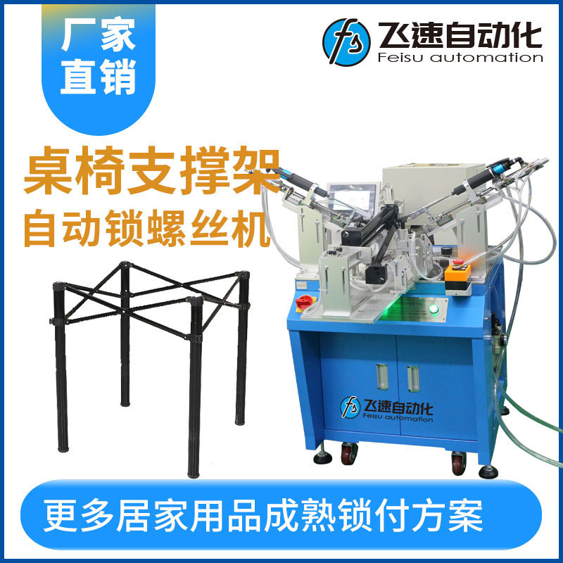 • 產品簡介: 座椅支撐架自動打螺絲機 座椅支撐架產品是日常生活中都需要用,在生產過程中支架組裝時需要用到螺絲來固定,傳統方式只能一枚一枚地進行鎖緊,螺絲鎖附效率低,為了提高鎖固螺絲的速度和質量,廠家會考慮采用自動螺絲機來替人工操作完成對工件的鎖固代一方面減輕工人的勞動強度,另一方面可以大大提高勞動生產率。為此飛速自動化為廠家設計一款座椅支撐架自動上螺絲機,多頭自動鎖付,是根據座椅支撐架來定制,該設備能夠多方面同時鎖付螺絲,采用進口伺服系統裝置,鎖付扭力精準,吹氣方向自動送料至工件鎖固。設備操作僅需一名人工,效果提升快,節省人工。