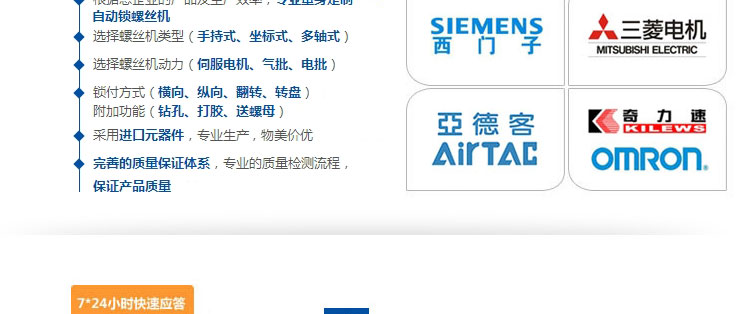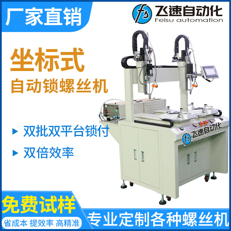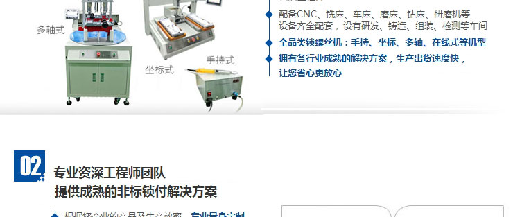 吹氣坐標式自動鎖螺絲機特點: 1、通用性強??筛鶕煌漠a品,設置相對應的行程軌跡程序,便可實現對不同產品的螺絲鎖付; 2、靈活性高。電批數量可以根據實際需要進行設置;3、降低工人的勞動強度。傳統的手工放置螺絲和對準螺絲頭部需要占用大量的工作時間和精力; 4、自動化程度高。操作簡單,員工訊速掌握操作和調試。一個工人可同時管理幾臺機器。節省人工; 5、 扭力精確。調節方便,保證鎖緊質量。